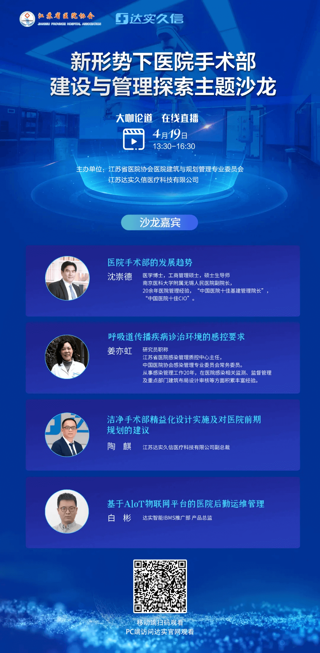 本次直播,邀請到了多位醫(yī)療領(lǐng)域的資深大咖,互相碰撞思想,探討心得。4大課題,180分鐘干貨,從理論到實踐,從現(xiàn)狀到發(fā)展,一場關(guān)于醫(yī)院手術(shù)部建設(shè)與發(fā)展的學(xué)術(shù)盛宴即將開啟。