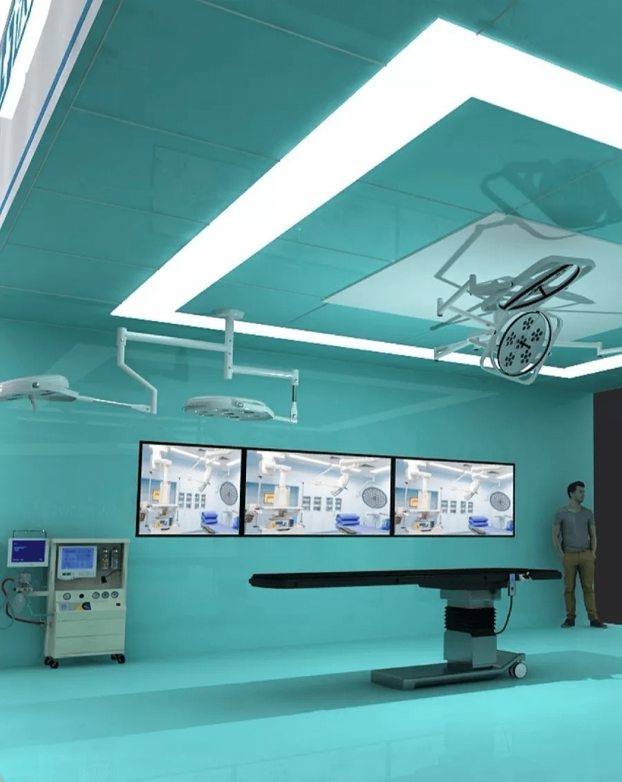 在這里,富含科技感的美學設計,一個“炫”字難以形容,通過情景體驗的模式,現(xiàn)場還原了新型一體化手術(shù)室的全部影像所需。