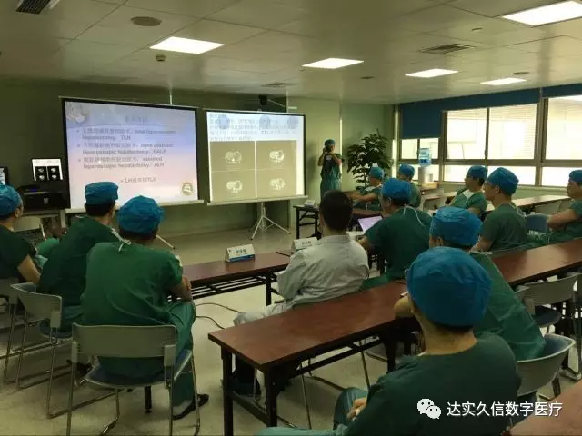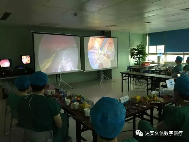 本次沙龍主要通過(guò)手術(shù)示教的形式展開(kāi),共舉行了6臺(tái)肝膽類手術(shù),由達(dá)實(shí)久信數(shù)字醫(yī)療手術(shù)示教系統(tǒng)全程技術(shù)支持。在示教會(huì)議室,除了能看到實(shí)時(shí)直播的腔鏡手術(shù)視頻,還能與手術(shù)室主刀醫(yī)生實(shí)時(shí)互動(dòng),討論相關(guān)病灶難題,手術(shù)方法等。